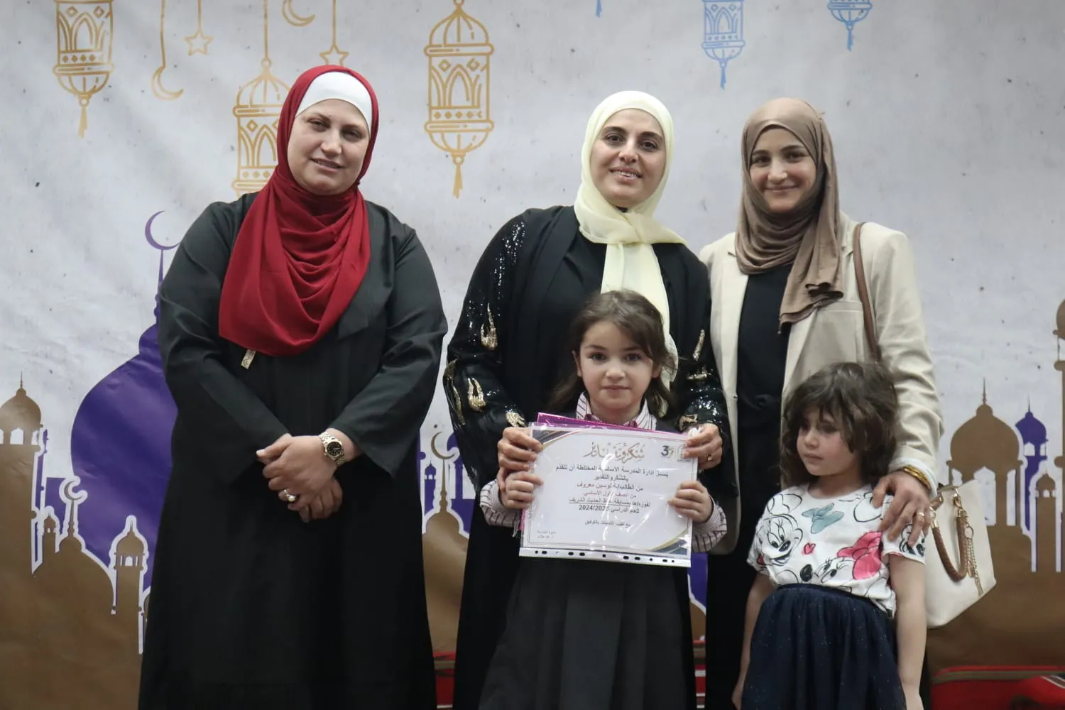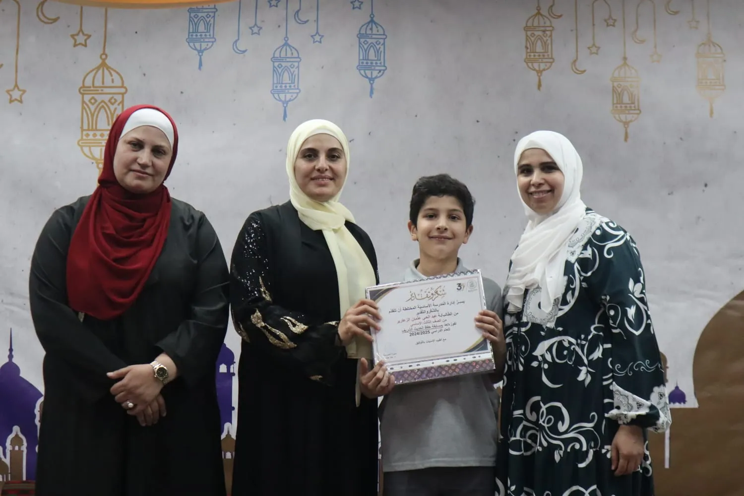 وكرمت مديرة المدرسة الطلبة الفائزين والذين بلغ عددهم في مسابقة حفظ الحديث النبوي الشريف 157 طالبا وطالبة و 4 طلبة في مسابقة مقرئ العمرية..