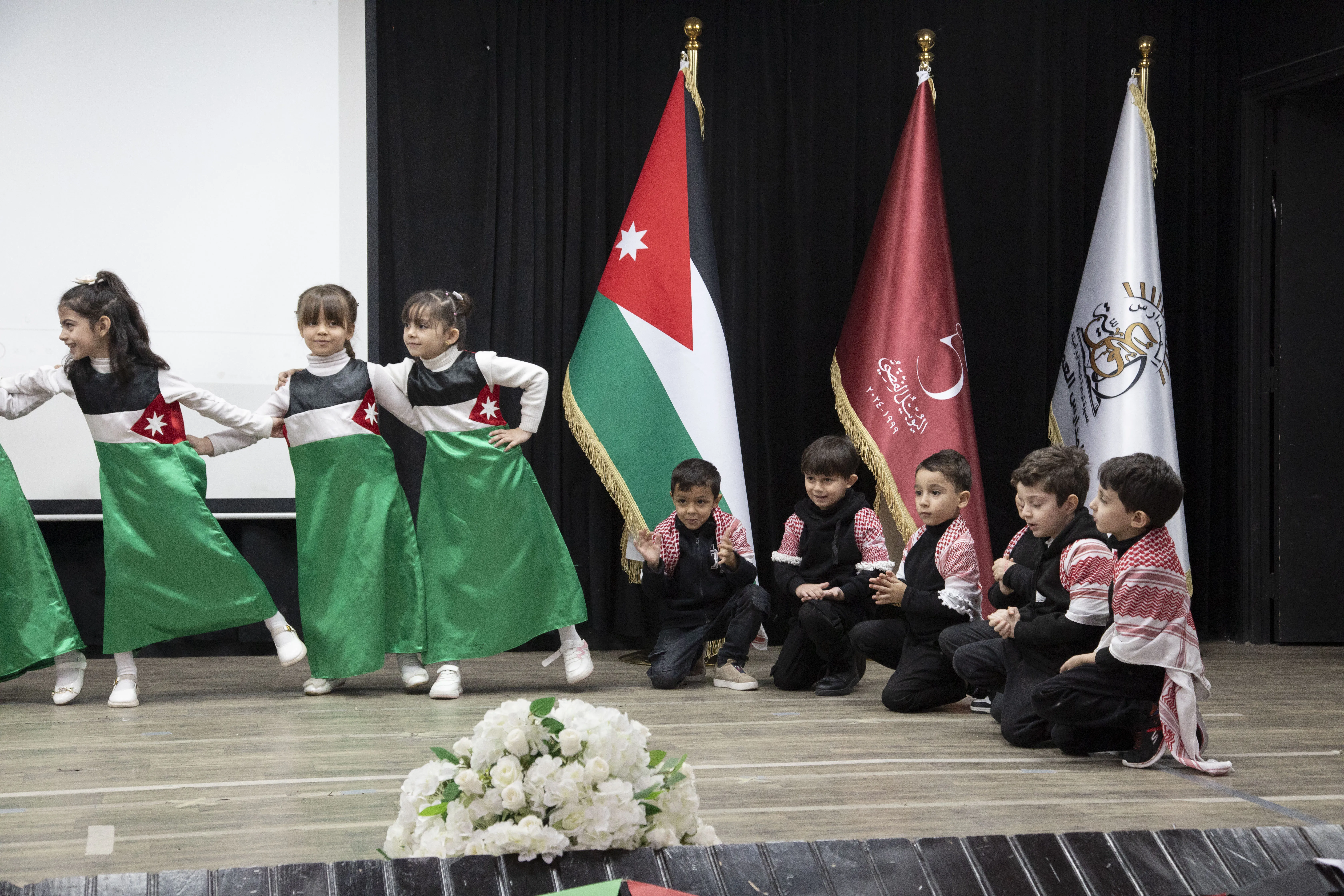 برعاية عطوفة الدكتور طارق الطراونة مدير إدارة التعليم الخاص وبحضور الدكتورة هيام رمضان عضو هيئة المديرين للمدارس العمرية تم استقبال ضيوف العمرية الأعزاء في مناسبة وطنية غالية على قلوبنا تحت شعار (على خطى الحسين) بمناسبة الذكرى التاسعة والثمانين لميلاد الراحل العظيم الملك الحسين بن طلال -طيب الله ثراه-. حيث هدفت الفعالية لتعزيز فكرة إحياء سير الأولين، من عظماء هذا الوطنِ الذي يُعدّ رمزاً للعزة والفخر. وإننا إذ نستذكر يوم ميلاد الملك الحسين رحمه الله فإننا نفخر بمسيرة البناء التي شيدها الآباءُ المؤسسون، وما قدموه من تضحيات عظيمة لتأسيس مملكتنا الحبيبة. وتضمنت الفعالية مجموعة من الفقرات المميزة التي قدمها طلاب وطالبات المدارس العمرية بحب وانتماء للقيادة الهاشمية الرشيدة تحت ظل جلالة الملك عبدالله الثاني بن الحسين وولي عهده الأمين صاحب السمو الملكي الأمير الحسين بن عبد الله الثاني.